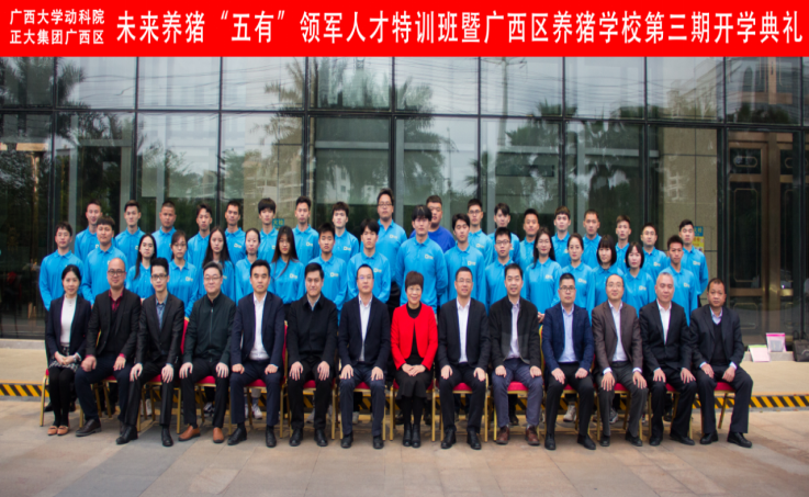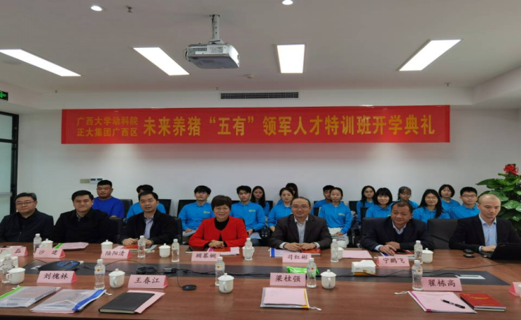 2021年3月21日下午,為了更好的培養(yǎng)廣西大學“五有”領(lǐng)軍人才,加強院企合作,廣西大學動物科學技術(shù)學院與正大集團聯(lián)合舉辦養(yǎng)豬"五有"領(lǐng)軍人才特訓班,在3月21日下午隆重舉辦了開班儀式,本次開班儀式由劉槐林總經(jīng)理主持,出席的有廣西大學動物科學技術(shù)學院黨委書記顧慕嫻書記,黨委副書記沙建,司紅彬副院長,陸陽清副院長,周磊副院長,以及正大集團廣西區(qū)高管賴平生總裁,劉琴萬總經(jīng)理,劉槐林總經(jīng)理,王春江總經(jīng)理,趙日浪等。