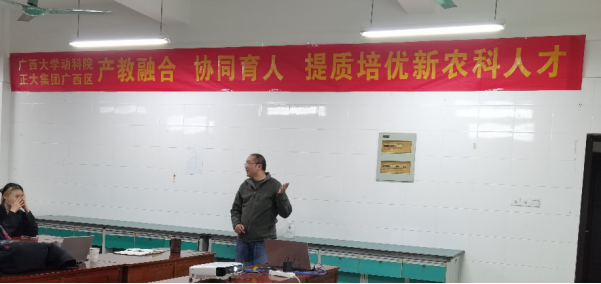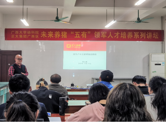 2020年12月13日,為促進產(chǎn)教融合、培養(yǎng)未來養(yǎng)豬“五有”領(lǐng)軍人才,我院有幸邀請到了正大集團廣西區(qū)獸醫(yī)總監(jiān)趙日浪先生開展主題講座。