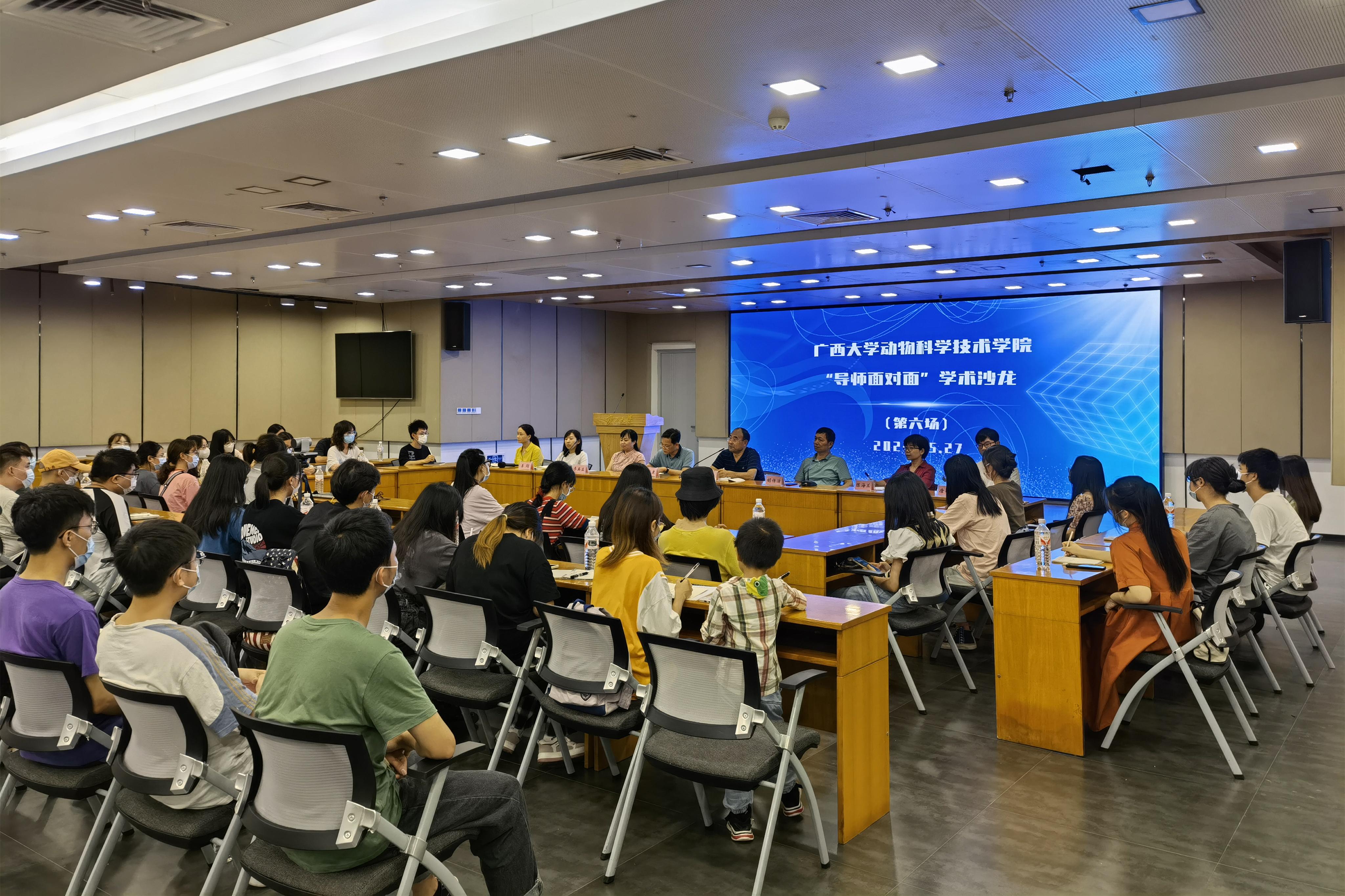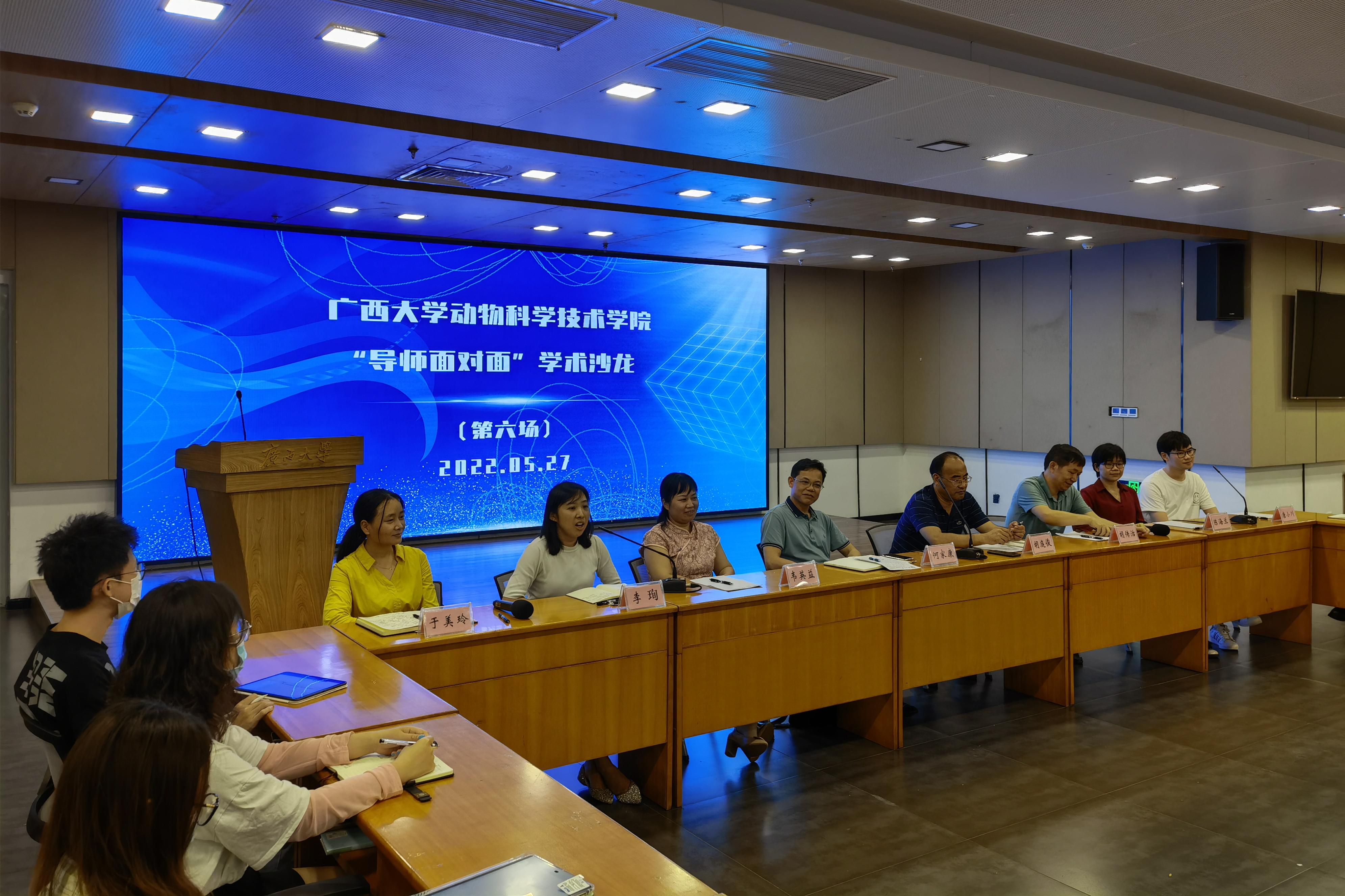 為鞏固專業(yè)思想,加強學(xué)風(fēng)建設(shè),增進(jìn)師生交流,營造學(xué)術(shù)氛圍,5月27日晚上,廣西大學(xué)動物科學(xué)技術(shù)學(xué)院在大學(xué)生活動中心三樓會議室舉辦“導(dǎo)師面對面”學(xué)術(shù)沙龍(第六場),邀請何家康、胡庭俊、胡傳活、韋英益、陳海蘭、李珣、唐小川、于美玲8位導(dǎo)師嘉賓到場分享個人經(jīng)歷、人才培養(yǎng)和科研方向,并與學(xué)生互動交流,共同探討學(xué)業(yè)規(guī)劃、職業(yè)發(fā)展和個人成長。此次學(xué)術(shù)沙龍采用現(xiàn)場會議、網(wǎng)絡(luò)直播相結(jié)合的形式,共有100余名學(xué)生參與其中。