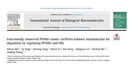 近日,廣西大學(xué)動物科學(xué)技術(shù)學(xué)院石德順教授帶領(lǐng)的動物克隆與生殖調(diào)控研究團(tuán)隊在水牛肌內(nèi)脂肪沉積調(diào)控研究中取得重要研究進(jìn)展。該成果以《功能保守的PPARG外顯子circRNA通過調(diào)控PPARG和HSL增強(qiáng)肌內(nèi)脂肪沉積》(Functionally conserved PPARG exonic circRNAsenhance intramuscular fat deposition by regulating PPARG and HSL)為題,發(fā)表在國際知名期刊《國際生物大分子雜志》(International Journal of Biological Macromolecules)(中科院大類一區(qū)top,IF:8.2)。