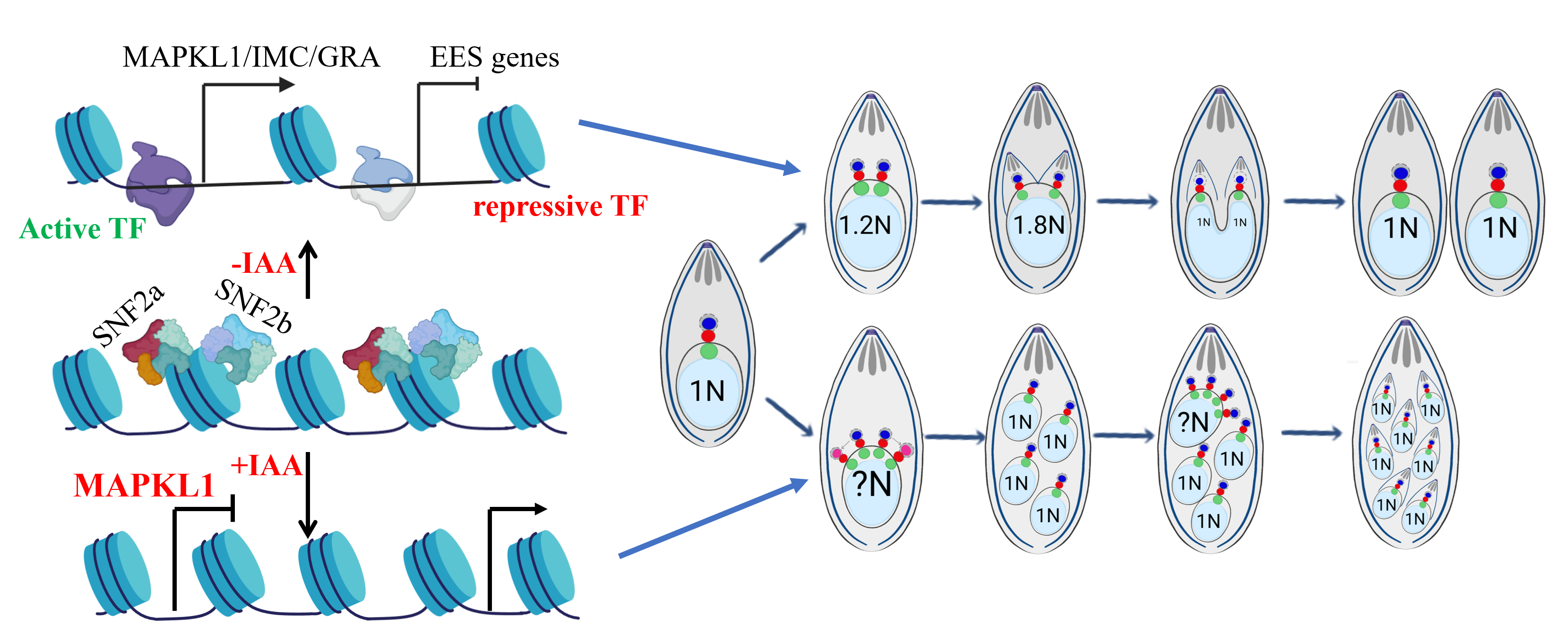 SWI/SNF復合體缺失對弓形蟲生長及分裂模式影響的模式圖
