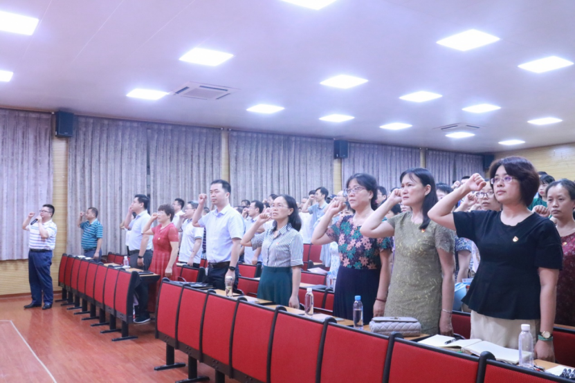 黨委委員黃偉堅老師帶領(lǐng)全體師生黨員宣誓