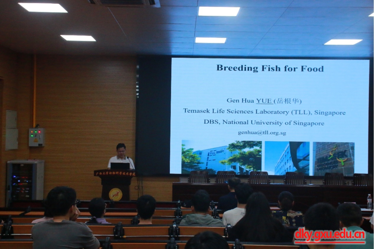 6月16日,廣西大學(xué)動物科學(xué)技術(shù)學(xué)院邀請新加坡國立大學(xué)岳根華教授到我院進(jìn)行學(xué)術(shù)交流。上午,在動物科學(xué)技術(shù)學(xué)院318報告廳開展了題為“食用魚的遺傳學(xué)改良(Genetic Improvement of Fish for Food)”學(xué)術(shù)報告會。報告會由動物科學(xué)技術(shù)學(xué)院副院長何家康教授主持,動物科學(xué)技術(shù)學(xué)院教師、水產(chǎn)行業(yè)從業(yè)人員及各年級研究生共100余人參加會議。下午,在動物科學(xué)技術(shù)學(xué)院302會議室開展了關(guān)于SCI論文寫作技巧的專題講座,由動物科學(xué)技術(shù)學(xué)院副院長何家康教授主持,動物科學(xué)技術(shù)學(xué)院教師、各年級研究生共40多人參加講座。
