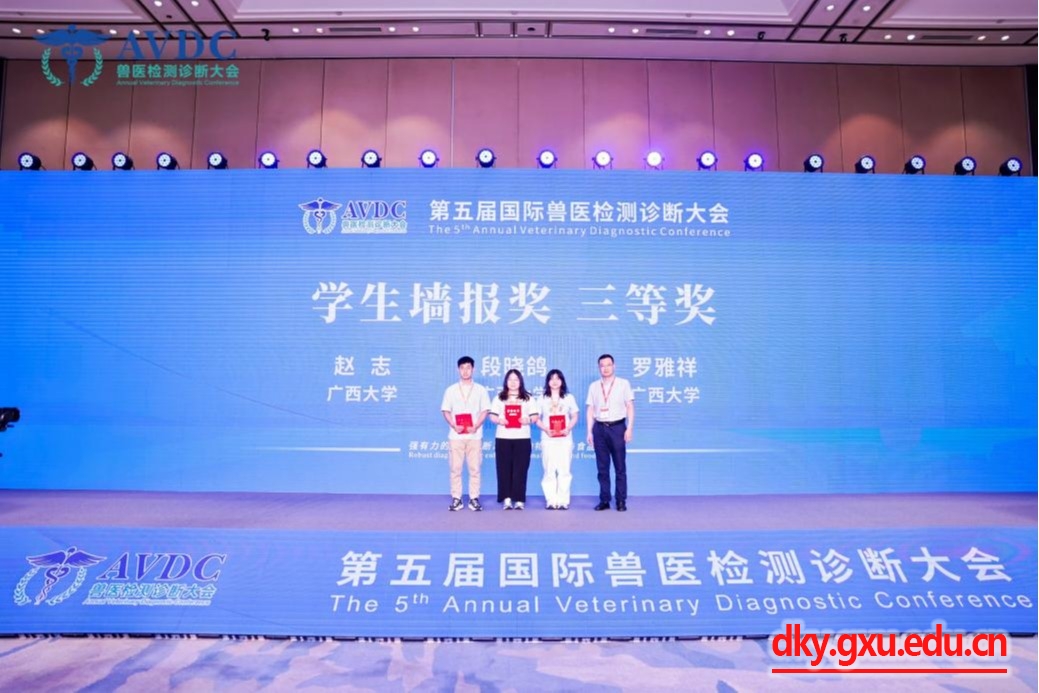 來自中國、美國、英國、荷蘭、加拿大、澳大利亞、日本、韓國等國家的120多位嘉賓,為參會(huì)代表帶來了128場精彩紛呈、內(nèi)容豐富的主題報(bào)告,與廣大參會(huì)代表分享自己在獸醫(yī)診斷領(lǐng)域的獨(dú)到見解和寶貴經(jīng)驗(yàn)。借此機(jī)會(huì),陳海蘭教授一行與匯報(bào)嘉賓、國際知名專家對獸醫(yī)檢測診斷領(lǐng)域前沿問題進(jìn)行了積極的交流和探討,努力推進(jìn)我校與國內(nèi)外高校和企業(yè)的合作。我院賀兆源等五位研究生所投稿件均被大會(huì)錄用于大會(huì)論文集并以墻報(bào)形式向參會(huì)同行展示。初步評選后,賀兆源、趙志、段曉鴿和羅雅祥四位同學(xué)的墻報(bào)進(jìn)入第二輪現(xiàn)場口頭匯報(bào)。經(jīng)過美國堪薩斯洲立大學(xué)白建法教授等專家組成的評審委員會(huì)從研究深度、應(yīng)用前景、匯報(bào)表現(xiàn)等方面進(jìn)行綜合打分評選后,本次大會(huì)所設(shè)3個(gè)墻報(bào)展示三等獎(jiǎng)被我院的趙志、段曉鴿和羅雅祥3位研究生包攬,為學(xué)院贏得了榮譽(yù)和認(rèn)可。