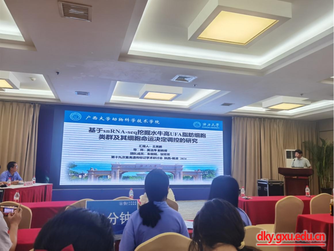 8月27日至30日,廣西大學動物科學技術學院黃潔萍副教授、王健助理教授、張瑞門助理教授、莊站偉助理教授及博士生和碩士生10余人參加了中國畜牧獸醫(yī)學會畜禽遺傳標記學分會九屆三次理事會暨第十九次畜禽遺傳標記學術研討會,此次會議由中國畜牧獸醫(yī)學會畜禽遺傳標記學分會主辦,西北農(nóng)林科技大學承辦。