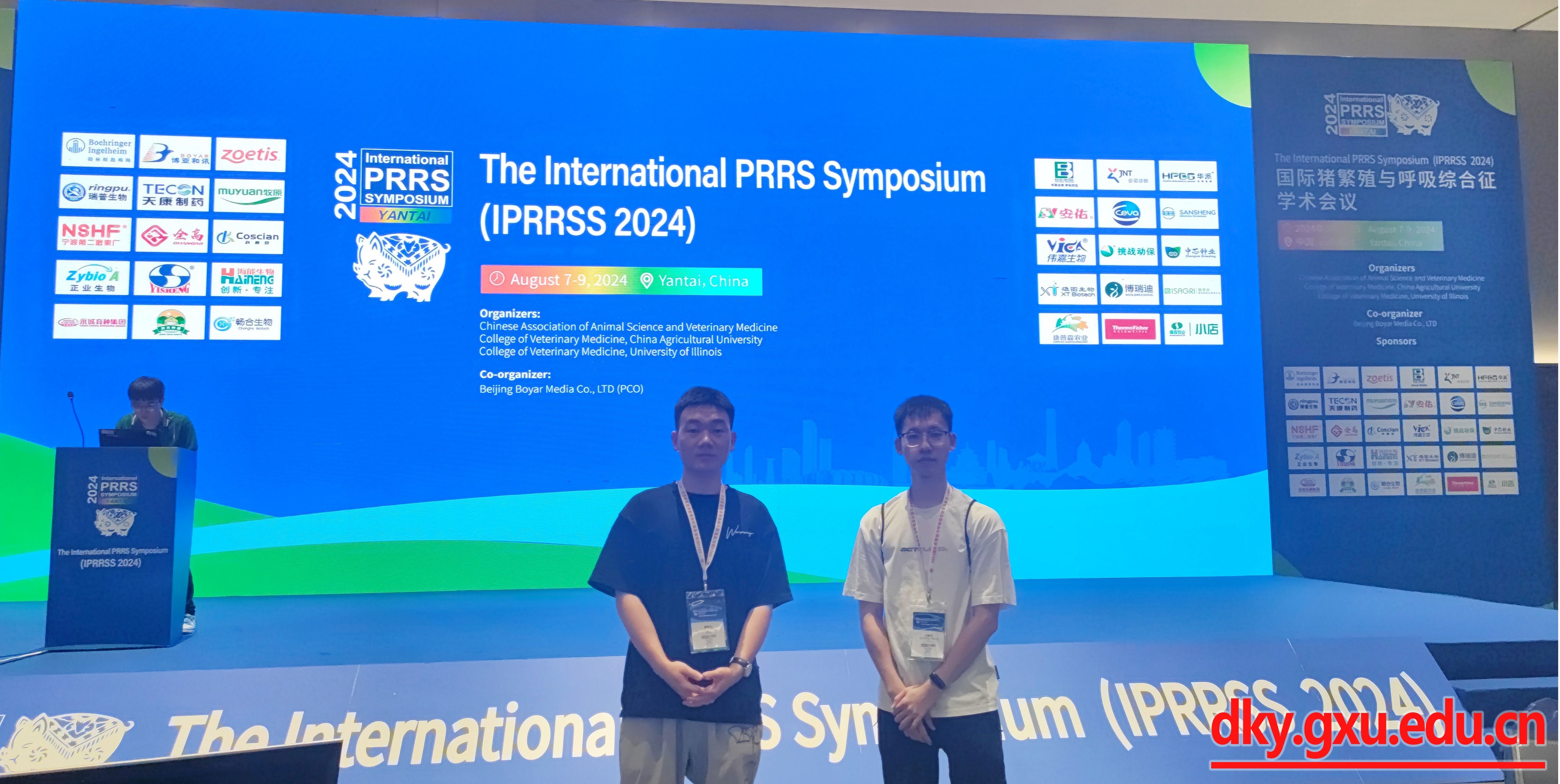 8月7日至9日,我院博士生王新東以及碩士生曹雄宇參加了在山東煙臺舉辦的2024國際豬繁殖與呼吸綜合征學(xué)術(shù)研討會(The International Porcine Reproductive andRespiratory Syndrome Symposium—The International PRRS Symposium,IPRRSS)。本次大會由中國畜牧獸醫(yī)學(xué)會、中國農(nóng)業(yè)大學(xué)動物醫(yī)學(xué)院、美國伊利諾伊大學(xué)獸醫(yī)學(xué)院聯(lián)合主辦,是豬繁殖與呼吸綜合征(PRRS)研究領(lǐng)域?qū)W術(shù)水平最高的專業(yè)國際會議。