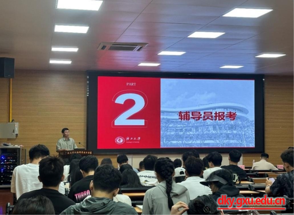 為進一步提升研究生的職業(yè)生涯規(guī)劃意識,發(fā)揮優(yōu)秀校友的引領(lǐng)示范作用,9月21日下午,廣西大學(xué)動物科學(xué)技術(shù)學(xué)院研究生會在學(xué)院318報告廳舉辦“逐光而行,行將致遠”職業(yè)規(guī)劃發(fā)展主題沙龍。本次活動邀請了廣西大學(xué)2024級博士研究生、廣西南寧神九生物制品有限責(zé)任公司董事長龍劍明,廣西大學(xué)2019級博士研究生、助理教授張瑞門,2020級碩士、動物科學(xué)技術(shù)學(xué)院輔導(dǎo)員馬朝陽三位優(yōu)秀校友代表,分享個人的求學(xué)經(jīng)歷及科研、工作、創(chuàng)業(yè)經(jīng)驗,并與同學(xué)們進行互動交流,共計250余名研究生參加此次活動。