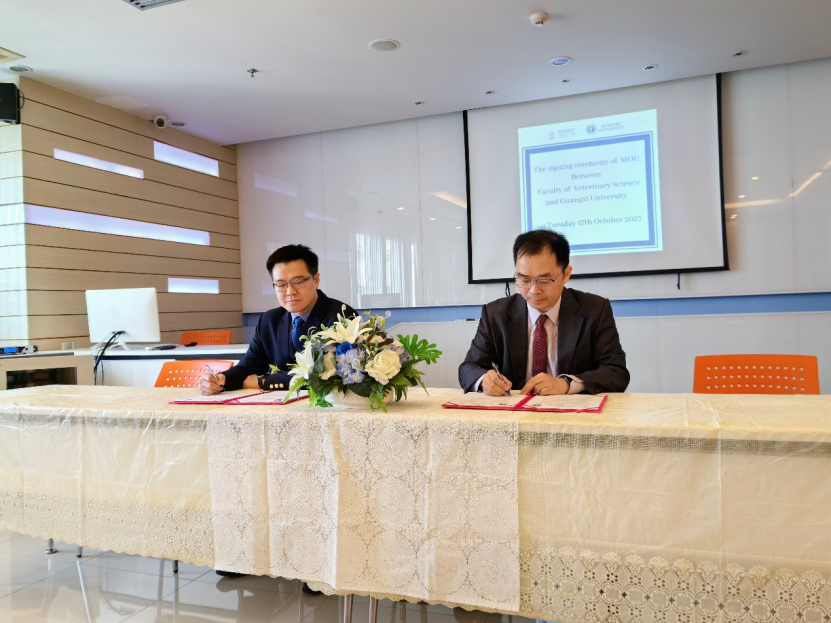 2023年10月17日,動物科學(xué)技術(shù)學(xué)院院長院陸陽清教授與王曉曄副教授到泰國朱拉隆功大學(xué)獸醫(yī)學(xué)院進(jìn)行訪問交流。