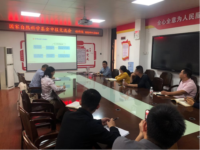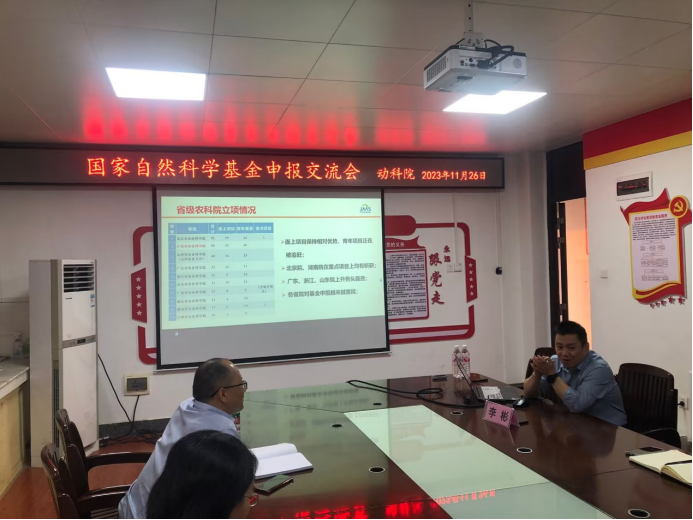 在學術報告結束之后,李彬研究員與動科院老師在302會議室進行了座談。李彬研究員首先分析了近兩年國家自然科學基金的申報和立項情況,接著從親身經歷總結分享了基金立項成功的三要素:選好題是關鍵、良好的研究積累和高質量的申請書,對項目申報書各項組成的撰寫提出了寶貴建議,隨后還分享了獸醫(yī)學科近十年項目的申報情況和各二級代碼的統(tǒng)計情況,最后與參會老師就國基項目申報進行了答疑和交流。