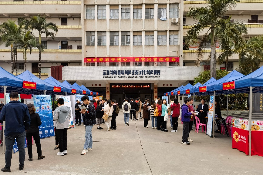 動(dòng)物科學(xué)技術(shù)學(xué)院、廣西畜牧獸醫(yī)學(xué)會(huì)聯(lián)合舉辦2023年廣西畜牧獸醫(yī)企業(yè)人才招聘會(huì)