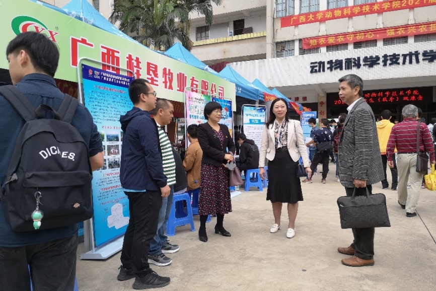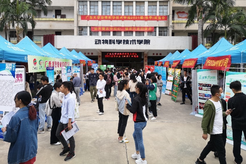 為全力做好“六穩(wěn)”工作、落實(shí)“六保”任務(wù),進(jìn)一步暢通用人單位招聘及畢業(yè)生求職雙向選擇渠道,值此常態(tài)化疫情防控的特殊時(shí)期,10月17日上午,廣西大學(xué)動(dòng)物科學(xué)技術(shù)學(xué)院在學(xué)院大樓前坪舉辦2021屆畢業(yè)生(秋季)雙選會(huì)。動(dòng)物科學(xué)技術(shù)學(xué)院黨委書記顧慕嫻,動(dòng)物科學(xué)技術(shù)學(xué)院常務(wù)副院長(zhǎng)張為宇,廣西大學(xué)學(xué)生工作部(處)副部(處)長(zhǎng)王利軍,動(dòng)物科學(xué)技術(shù)學(xué)院黨委副書記沙建來到雙選會(huì)現(xiàn)場(chǎng),并與畢業(yè)生和用人單位深入交流。
