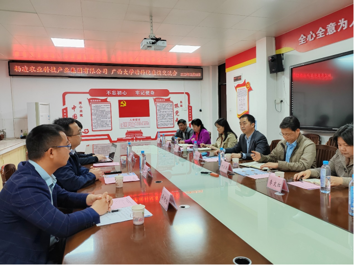座談中,廣西大學(xué)動(dòng)物科學(xué)技術(shù)學(xué)院院長陸陽清對(duì)楊凌農(nóng)業(yè)科技產(chǎn)業(yè)集團(tuán)有限公司的到訪表示熱烈歡迎,并進(jìn)一步介紹了廣西大學(xué)的悠久歷史、發(fā)展歷程、產(chǎn)教融合、學(xué)科建設(shè)、社會(huì)服務(wù)等情況,最后希望以后能更廣泛更深入地與楊凌農(nóng)業(yè)科技產(chǎn)業(yè)集團(tuán)有限公司在科學(xué)研究、產(chǎn)業(yè)技術(shù)服務(wù)、人才培養(yǎng)等方面進(jìn)行交流與合作,實(shí)現(xiàn)合作共贏。