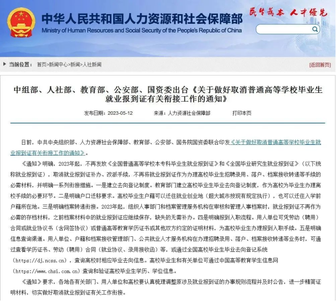 就業(yè)服務(wù)丨自2023年起,取消高校畢業(yè)生就業(yè)報(bào)到證,切實(shí)做好銜接措施