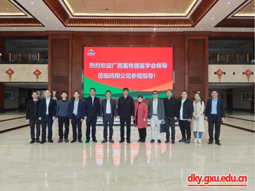 3月21日下午,應(yīng)廣西揚(yáng)翔股份有限公司常務(wù)副總裁張從林的邀請,廣西畜牧獸醫(yī)學(xué)會理事長、原副校長羅廷榮教授,動物科學(xué)技術(shù)學(xué)院院長陸陽清教授,郭亞芬教授等一行人前往廣西揚(yáng)翔股份有限公司位于貴港的總部開展訪企拓崗、校企合作工作。