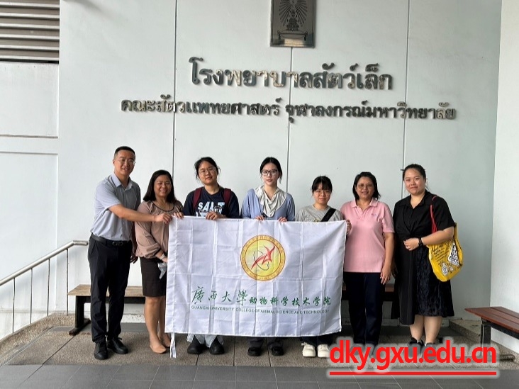 On July 1, Associate Professor Wang Xiaoye and Teacher Wei Yixian from the College of Animal Science and Technology led students Huang Lirou, Li Lixuan and Hu Jiamin to Chulalongkorn University in Thailand for a three-month small animal clinical diagnosis and treatment internship. In addition, Associate Professor Wang Xiaoye and Teacher Wei Yixian also communicated and discussed with relevant staff from Chulalongkorn University, Kasetsart University and Prince of Songkla University in Thailand on issues such as future exchange internships, joint application for scientific research projects and promotion of academic exchange conferences.