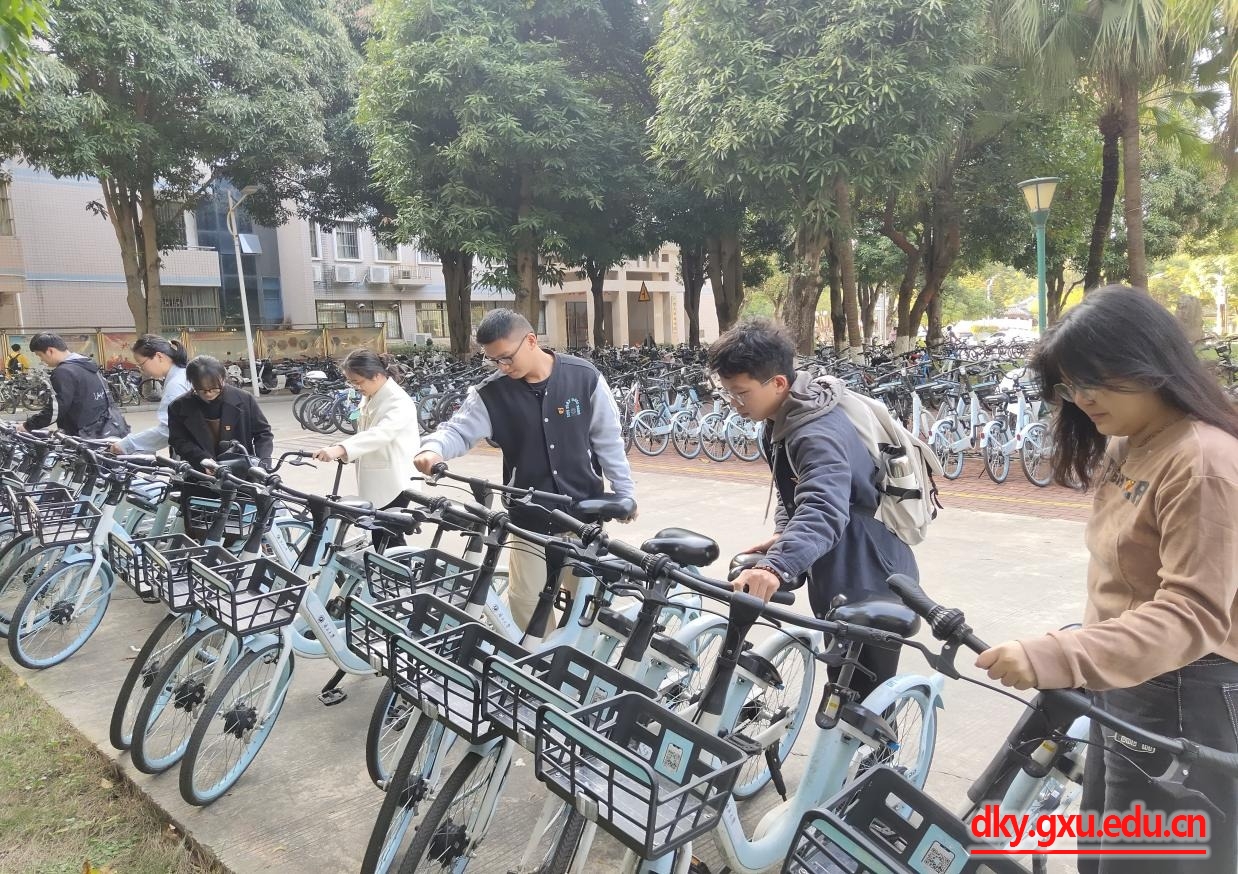 Party members of the branch are sorting shared bicycles under the 10th teaching building