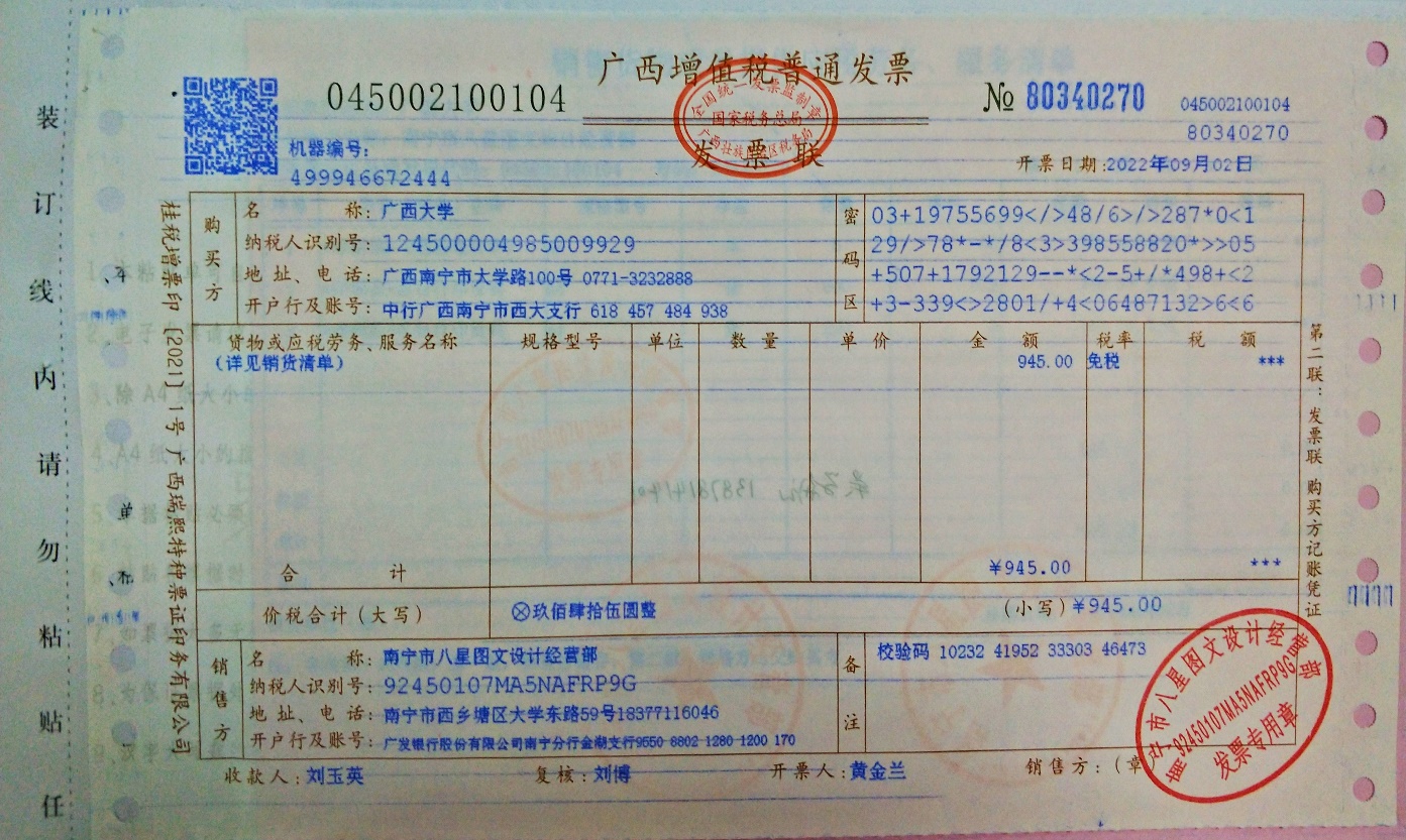 注意:特殊業(yè)務(wù)外,發(fā)票抬頭不能寫(xiě)個(gè)人名字或廣西大學(xué)XX學(xué)院。