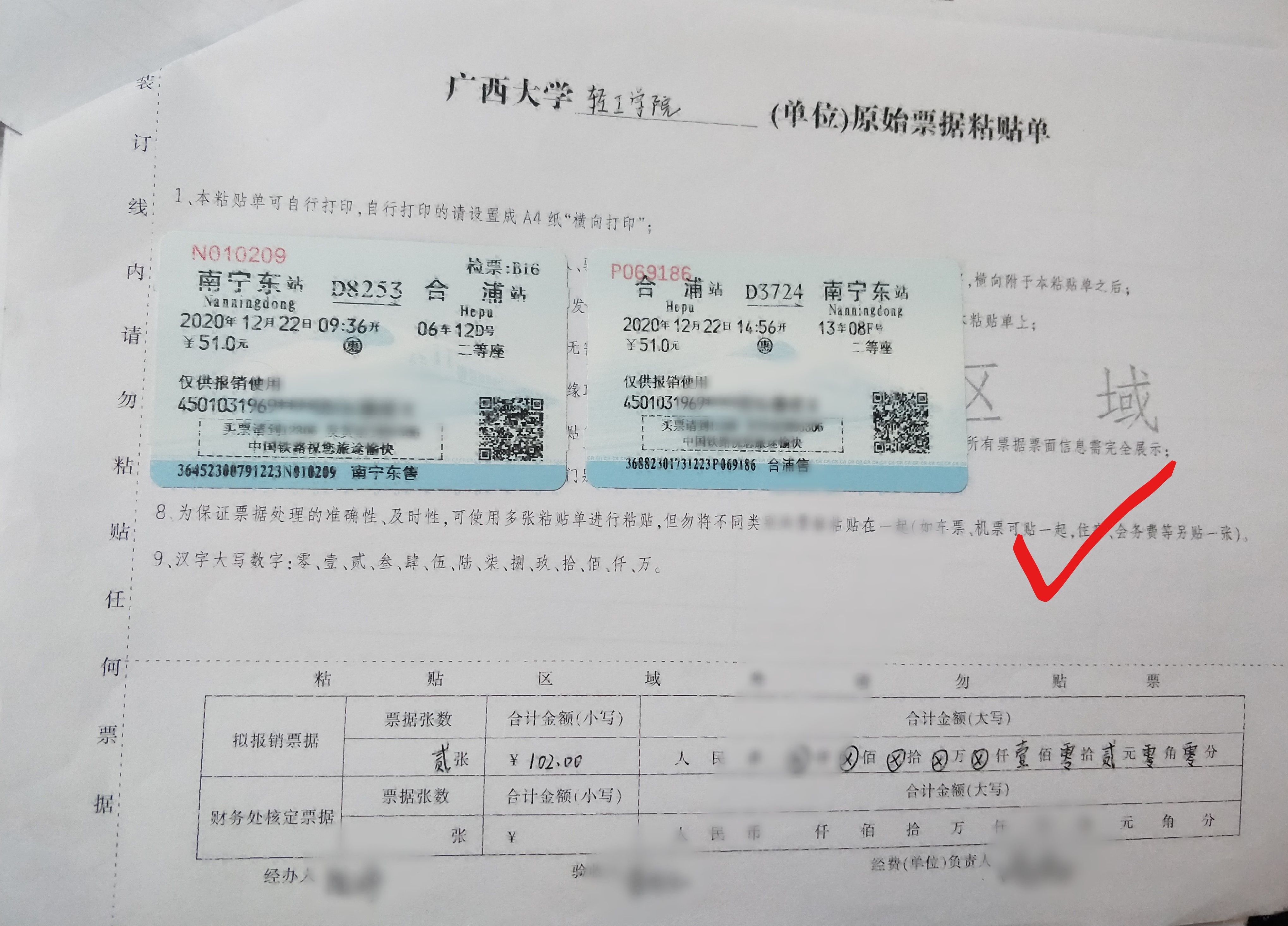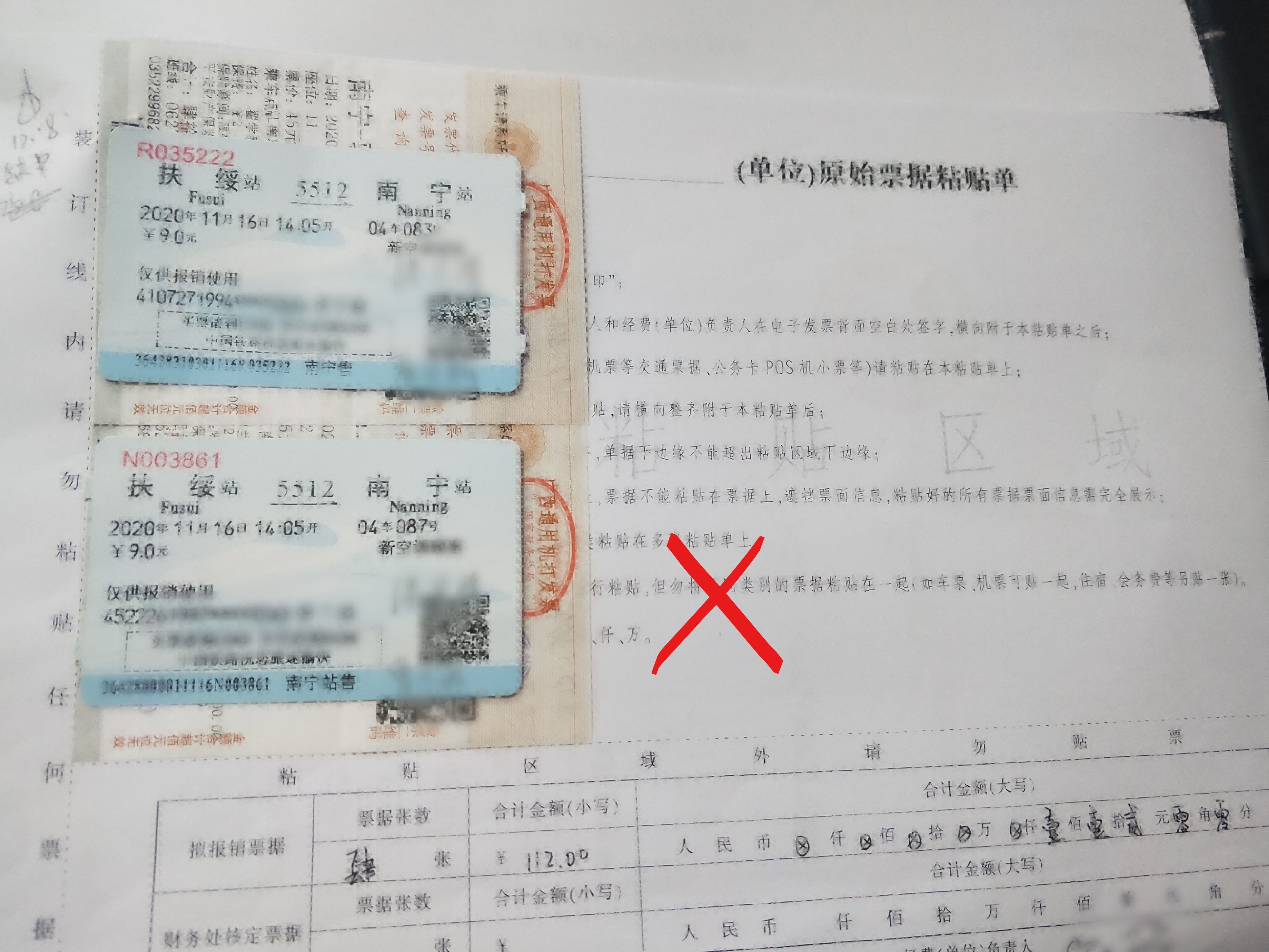 1.較小的票據(jù)(如火車(chē)汽車(chē)票、出租車(chē)票、定額發(fā)票等)平鋪粘貼在“廣西大學(xué)原始票據(jù)粘貼單”上,不能重疊粘貼在票據(jù)的上面,以免票面信息被粘住;過(guò)多的小票據(jù)可分多頁(yè)粘貼。